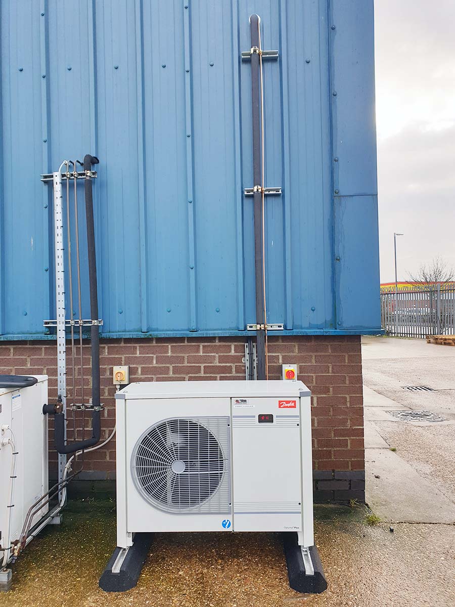 The Danfoss Optyma condenser unit was sited and bolted to Fixit-Foot heavy duty high density rubber feet that raise the unit off the ground to help prevent debris from getting into the unit, and provide vibration and sound deadening.