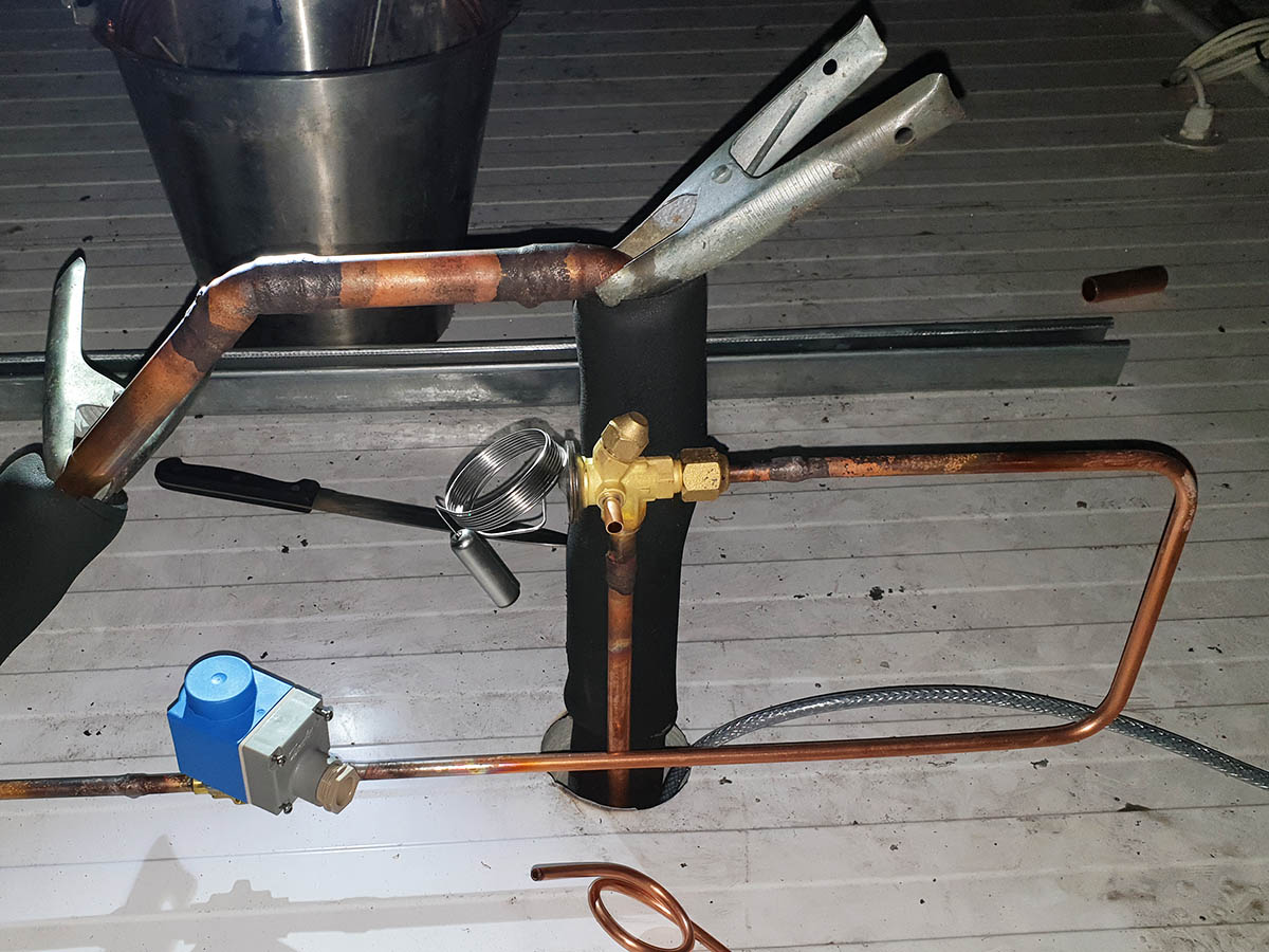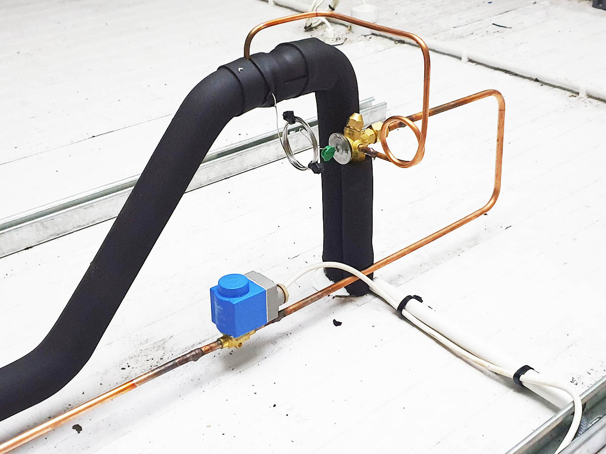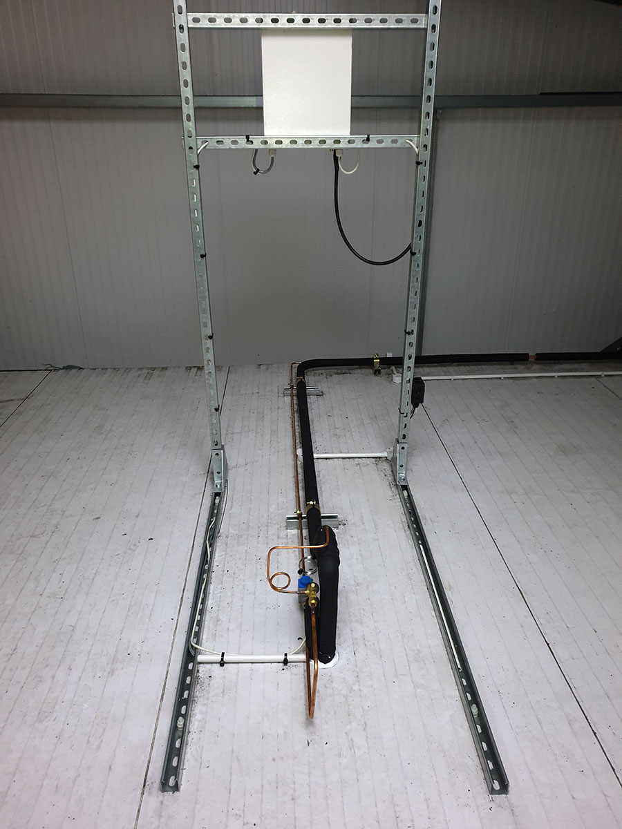 The Danfoss Condensing Unit suction pipe work was clamped with lagging surrounding Kloshure clamps that prevent condensation and ice forming on the pipes.