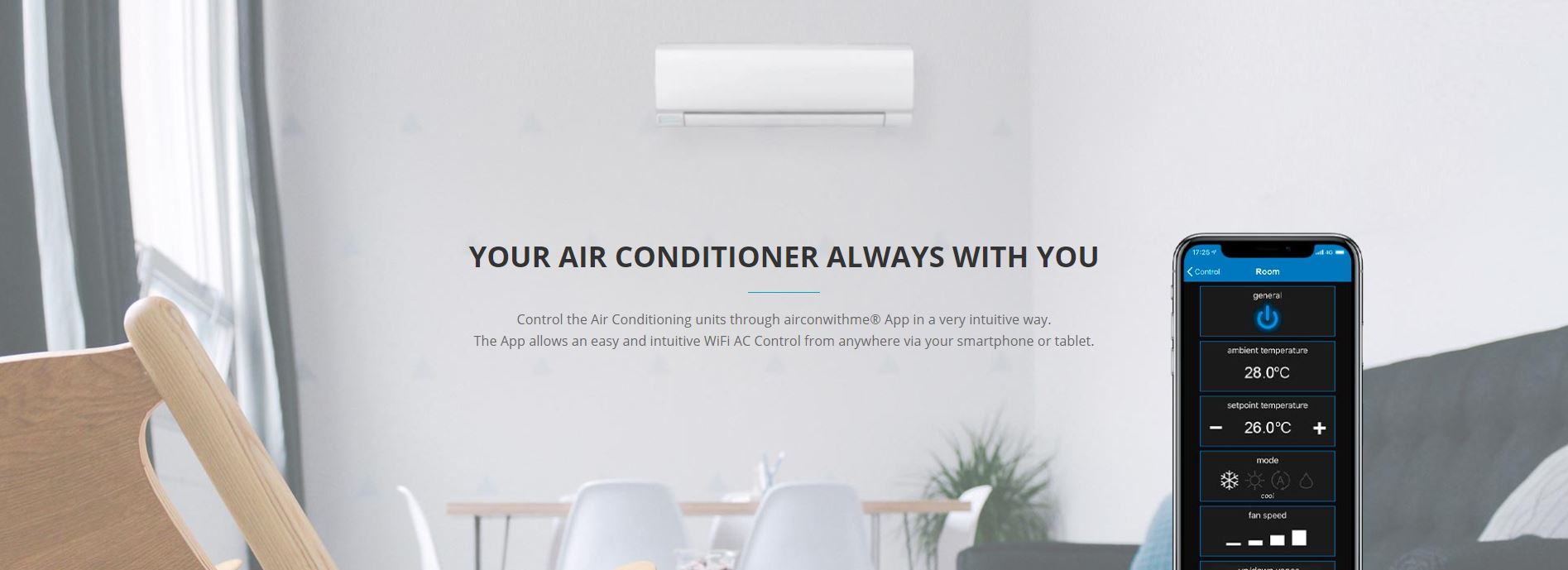 With the additional Mitsubishi WiFi adapter and the Airconwithme app, the system can be controlled from anywhere you’ve got your phone and an internet connection.
